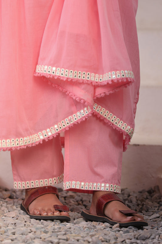 Pink Anarkali Cotton Kurta Set – Mirror Embroidery Festive Wear (RR1055-Pink)